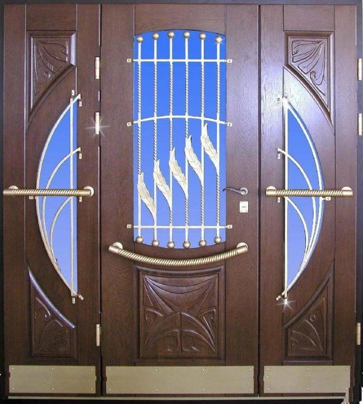 Основой отделки самой двери может служить массив натурального дерева (дуба, ясеня, сосны), натуральный шпон, МДФ-панель. Если речь идет о двери, которая будет устанавливаться на улицу, поверхность должна быть обработана атмосферостойкими материалами.