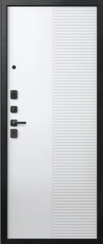 Надежная входная Дверь V-18 Черный муар + Кашемир графит - Кашемир Белый премиум класса по цене 42 250 руб. Большая толщина стали защитит от проникновения в ваш дом, квартиру или коттедж. Используется очень качественная фурнитура: замки, цилиндры, ручки, защелки. Покрытие и отделка двери изготовлено под внимательным контролем производителя. Дверь имеет долгий срок службы и гарантию.