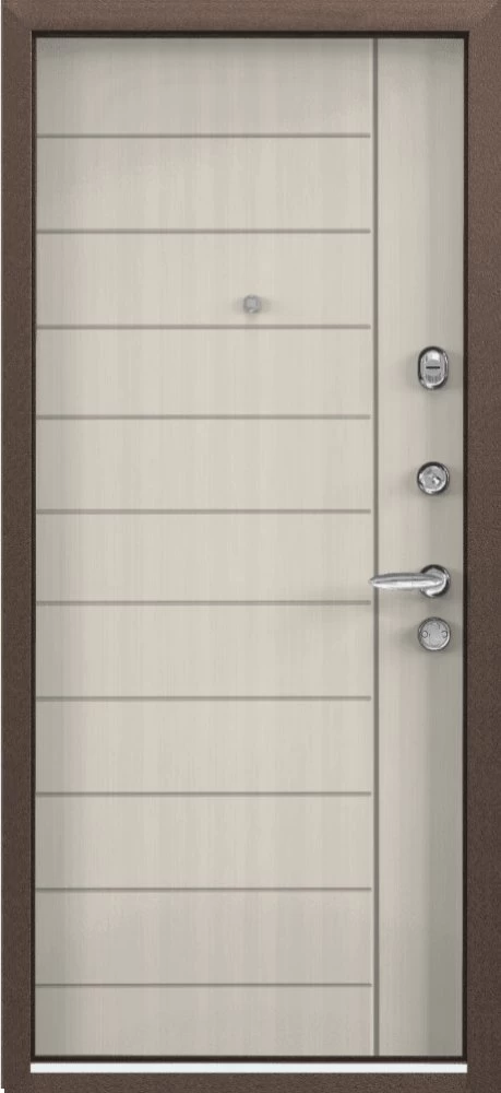 Надежная входная Дверь Цербер 3К(Чёрная) Горизонт Латте(Сменная панель) премиум класса по цене 38 000 руб. Большая толщина стали защитит от проникновения в ваш дом, квартиру или коттедж. Используется очень качественная фурнитура: замки, цилиндры, ручки, защелки. Покрытие и отделка двери изготовлено под внимательным контролем производителя. Дверь имеет долгий срок службы и гарантию.